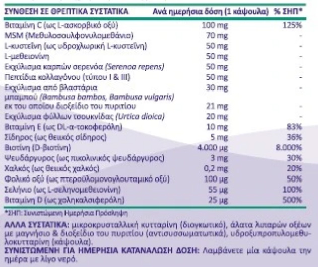- Υποστήριξη υγείας δέρματος, μαλλιών και νυχιών